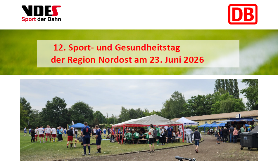 der Konzernbevollmächtigten Nordost, Alexander Kaczmarek, hatin der letzten Woche beim Regionalvorstand der VDES-Region Ost dentraditionellen Sport- und Gesundheitstag für die DB-Region Nordost bestellt.